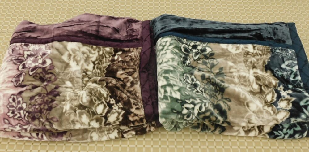 綿布団の場合は、毛布の柄のついている方。または商品ラベルの品質表示がついている方を、肌にあてその上から布団を掛けてください。