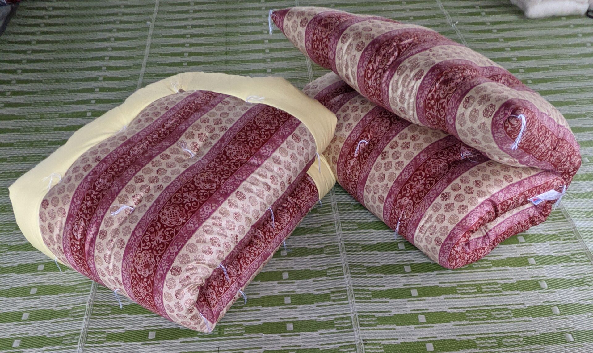 わずかにポリエステルが含まれておりますが、メキシコ綿とインド綿が中心の掛ふとん用もめん綿で、150✕200センチの掛ふとんをお作りしました。