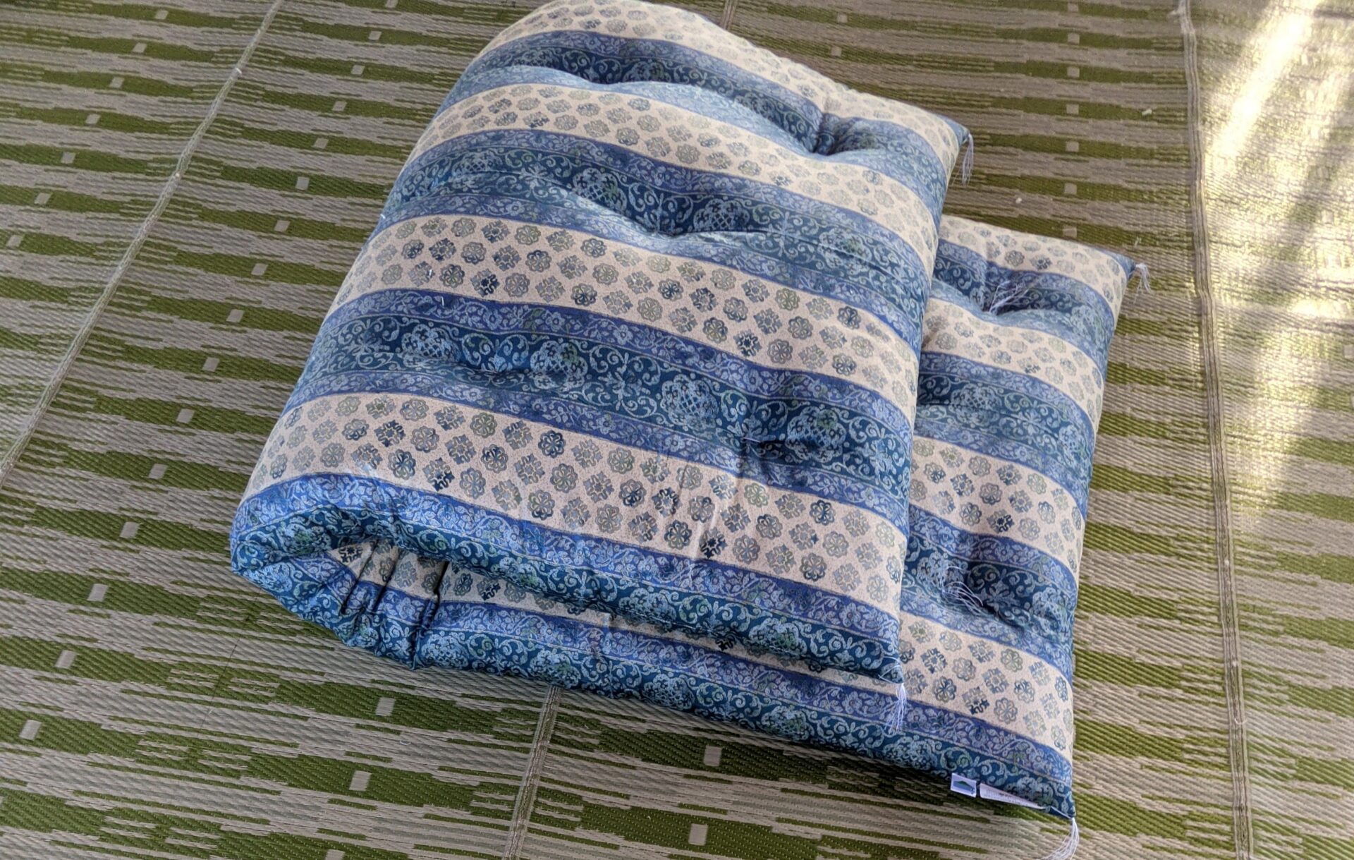 打ち直しでシングルとダブル(正確には四布サイズ)の敷ふとんを作らせていただきました。