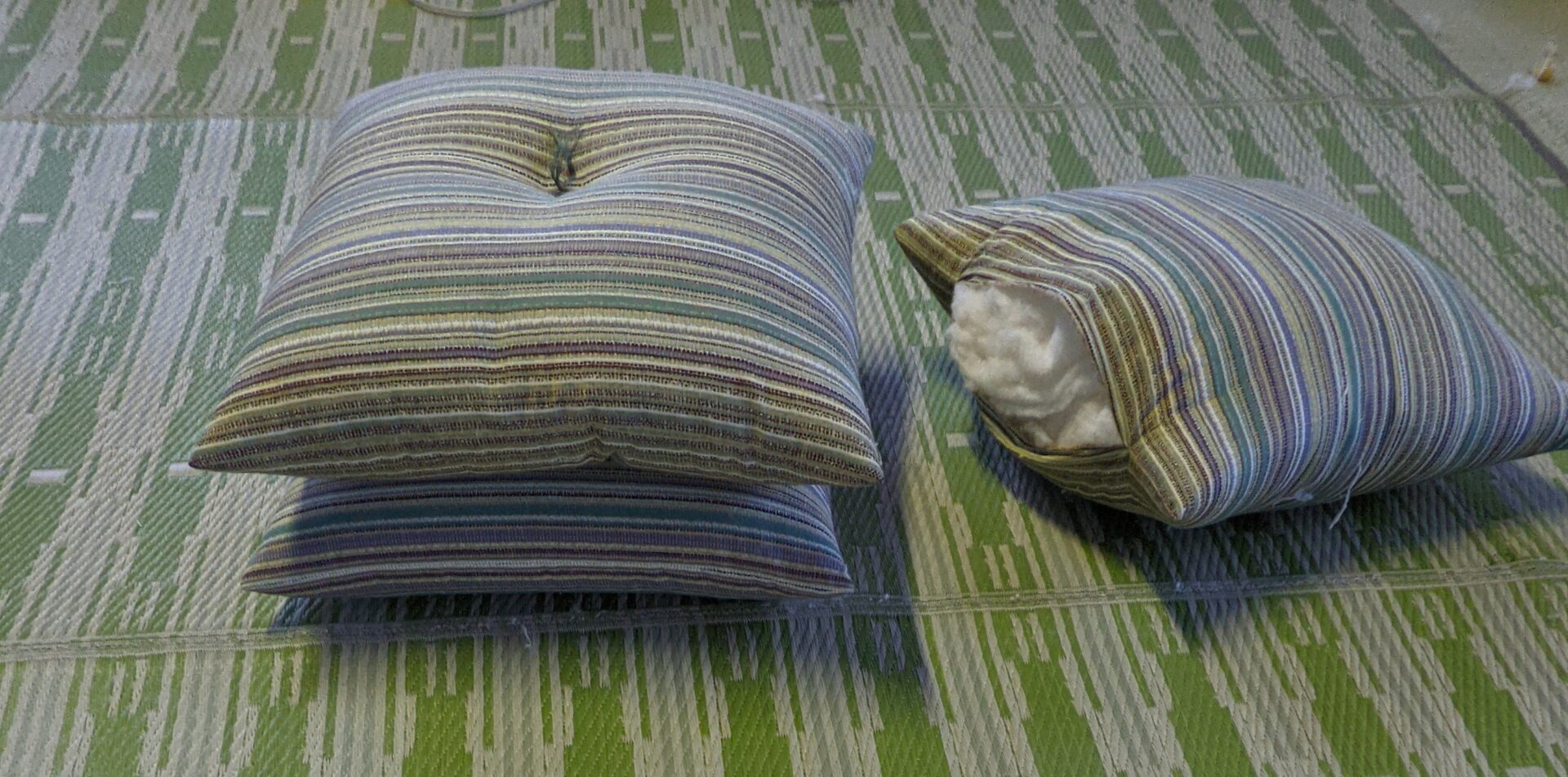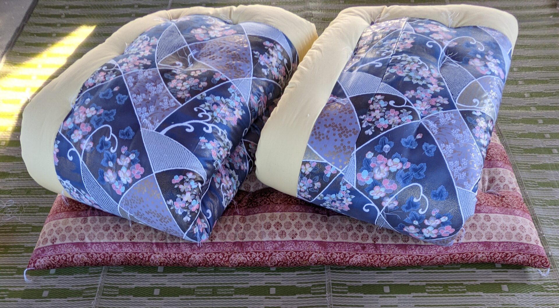 今日は小座布団が打ち直し綿、他は新しい綿です。