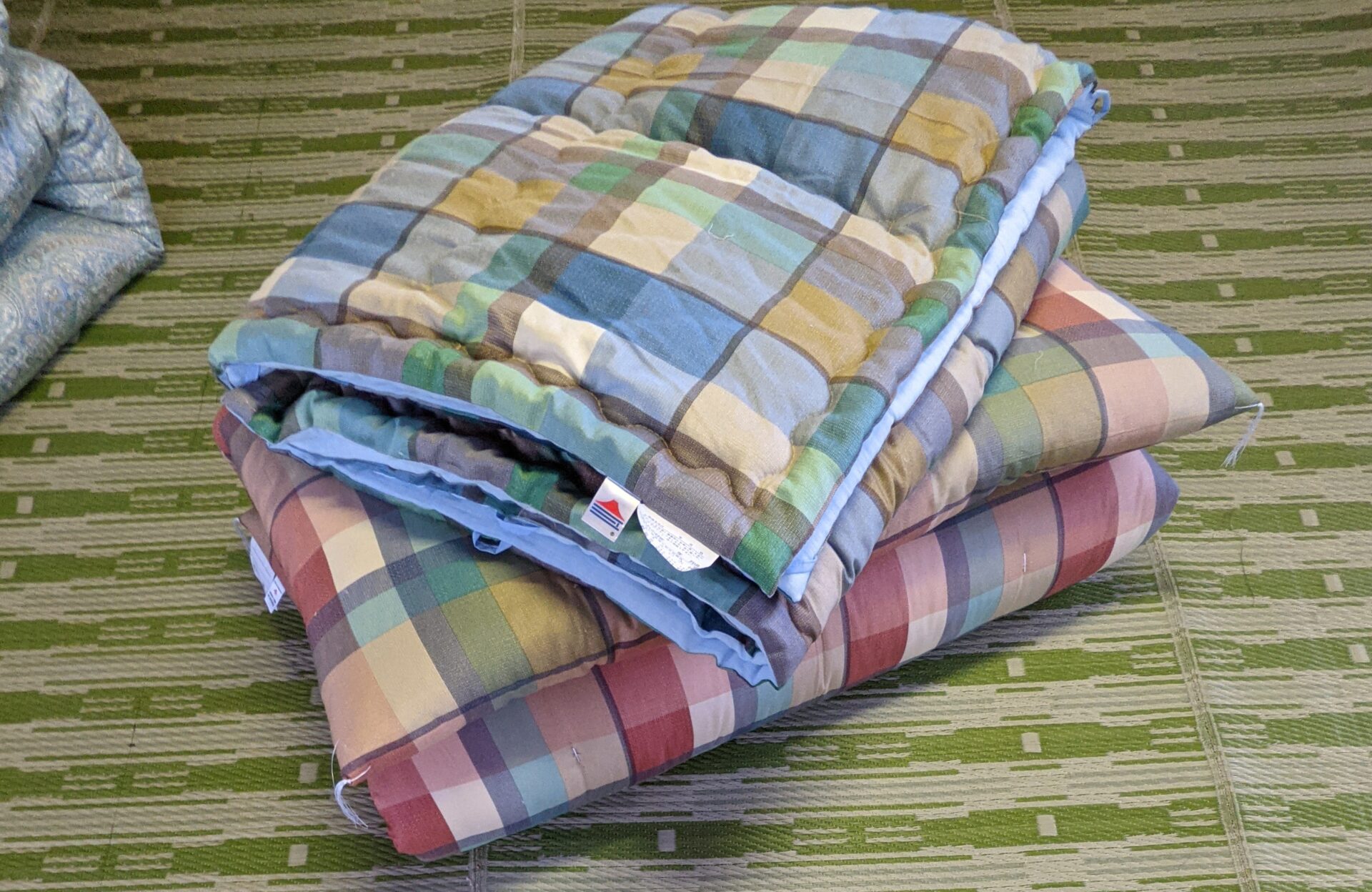薄敷ふとんと「もめん100%」の肌掛ふとんキルティング仕立てもいたしましたが、