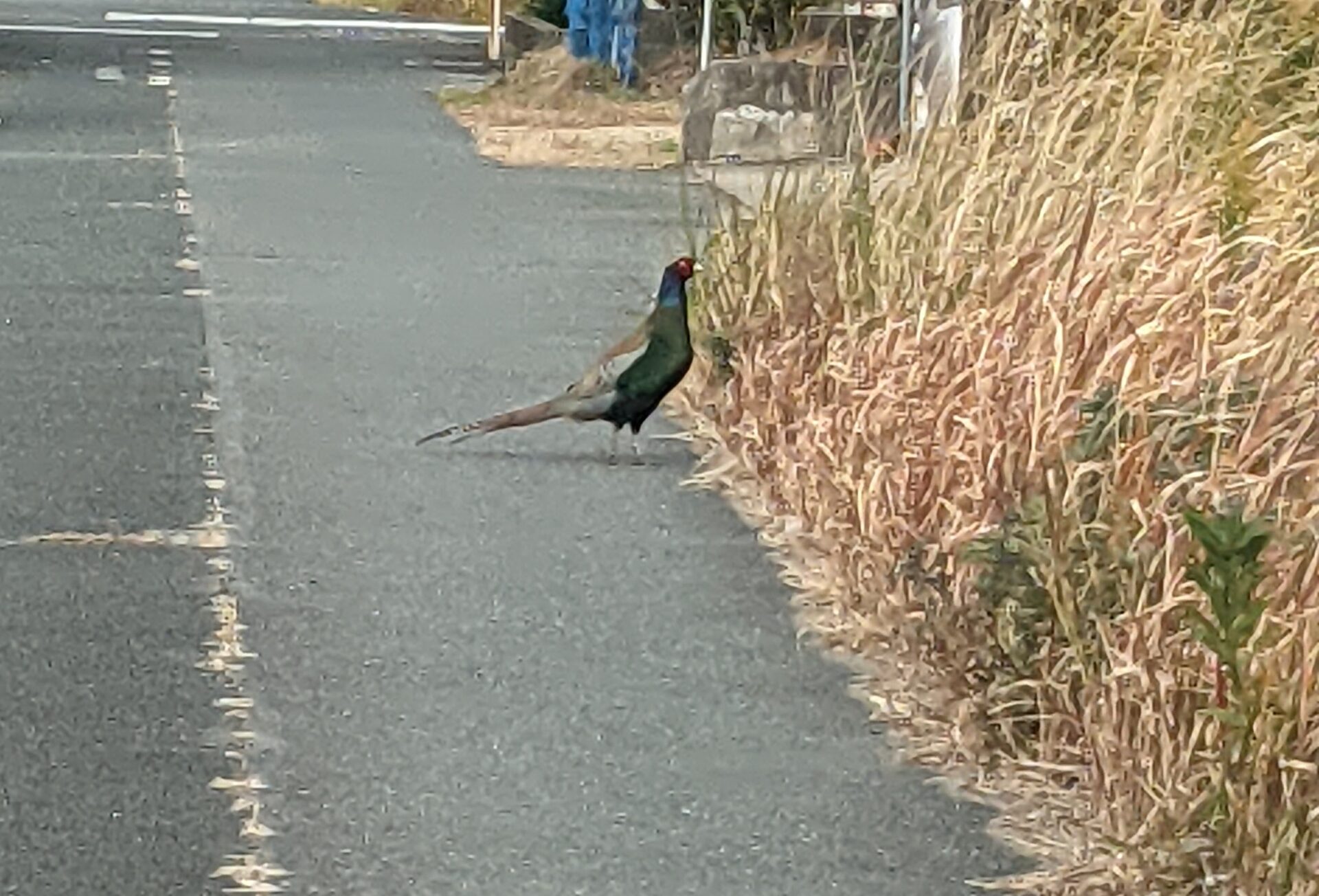 キジの雄です。時々出会いますが、この辺りは「まだまだのどかだなぁ」と思います。