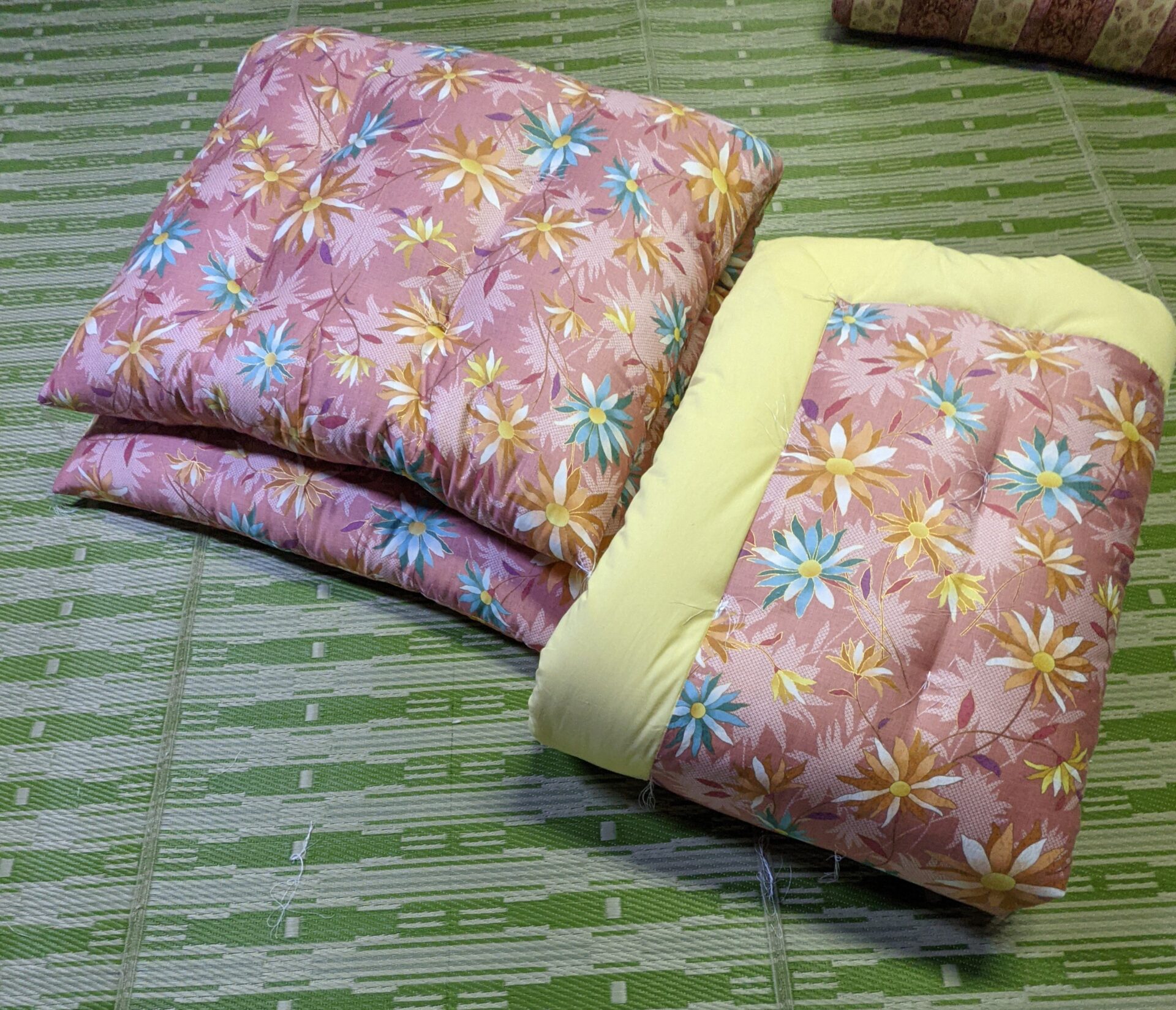 昨日一押しもめん綿の敷ふとんをお作りしたのですが、「ハッ!」と気づきました、綴じ数を間違えて、打ち直しの敷ふとんのようにしてしまったことを。
