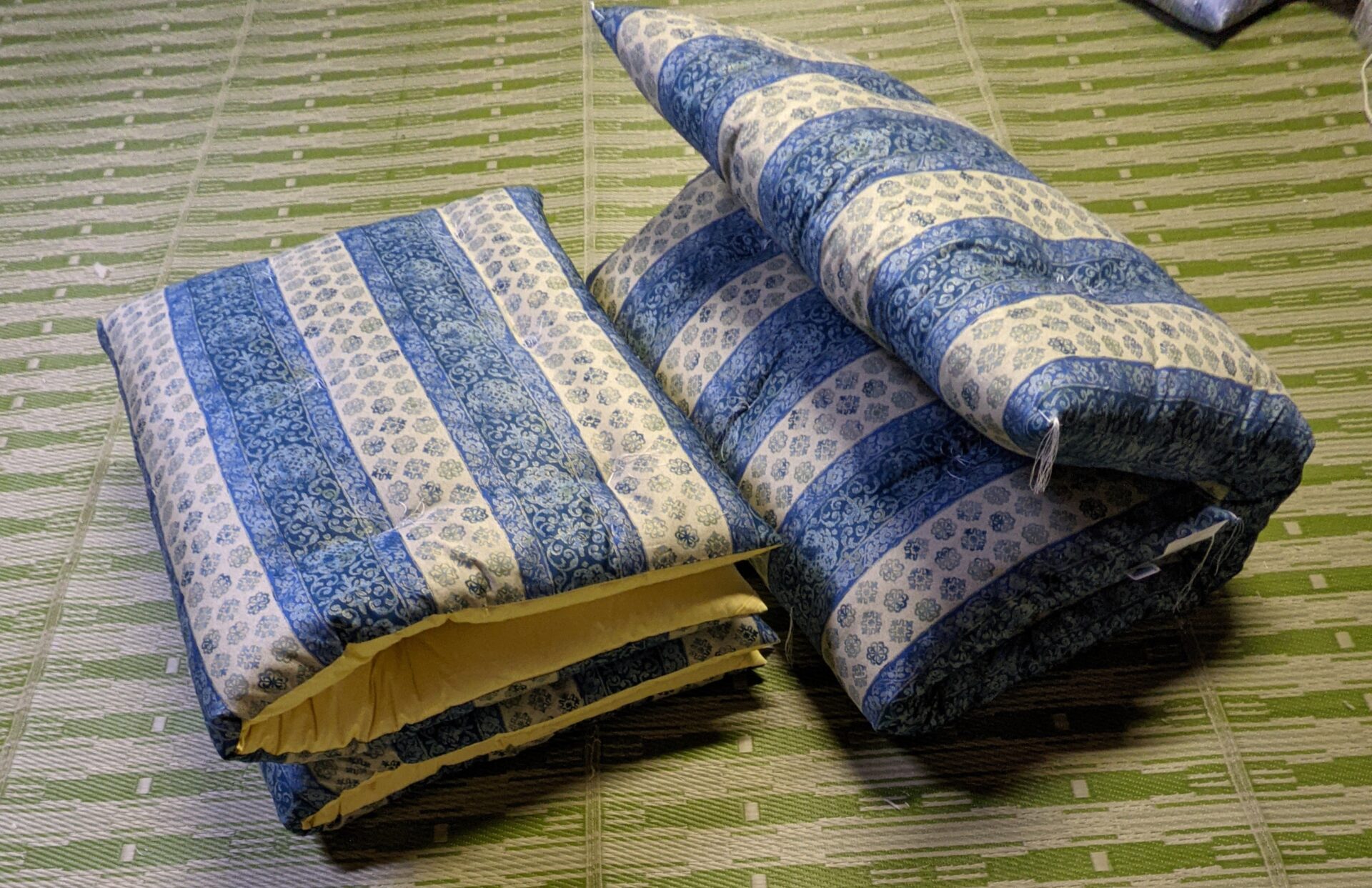 本日は打ち直しの薄敷ふとんと、敷と掛のセットをお仕立ていたしました。