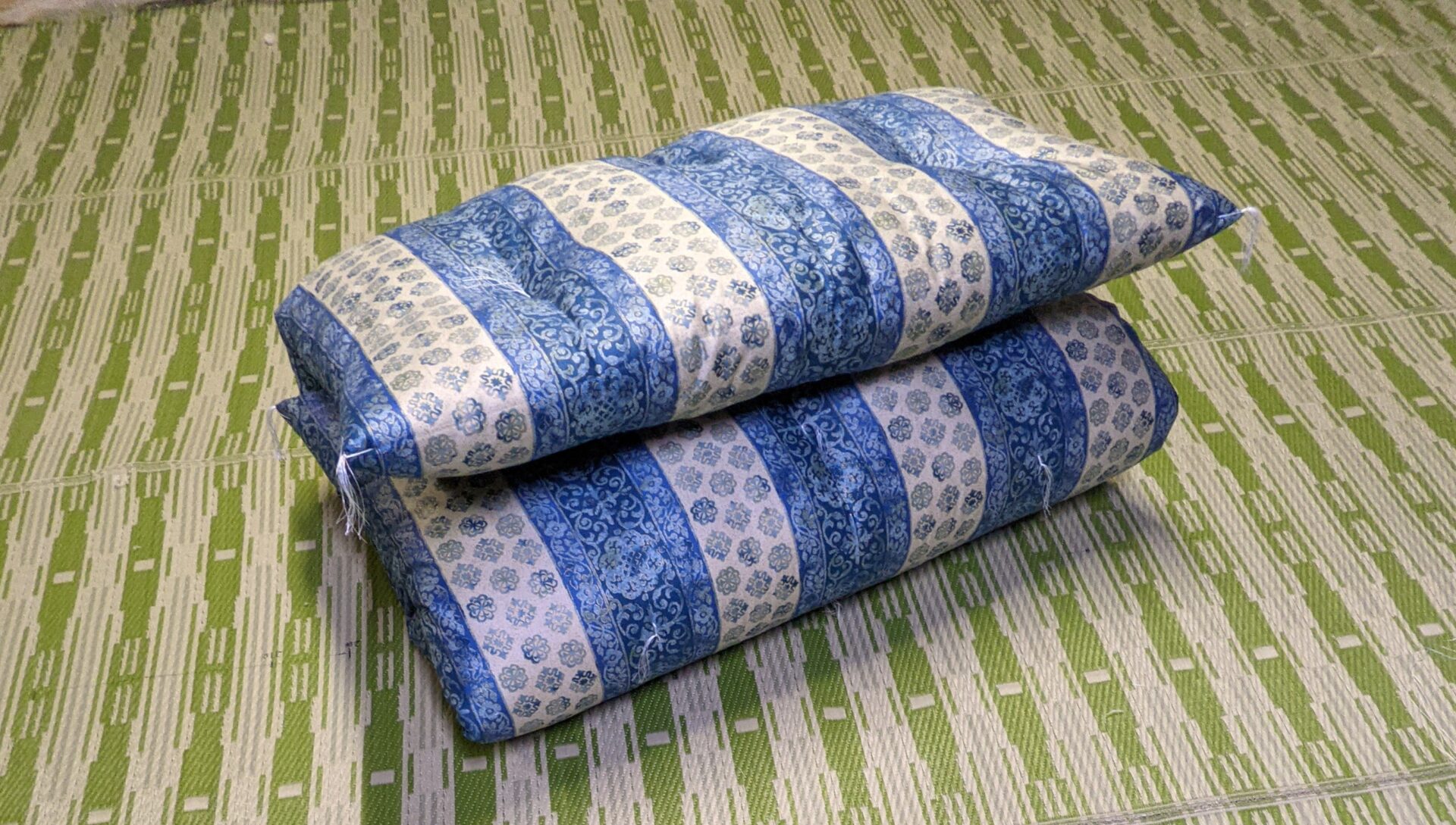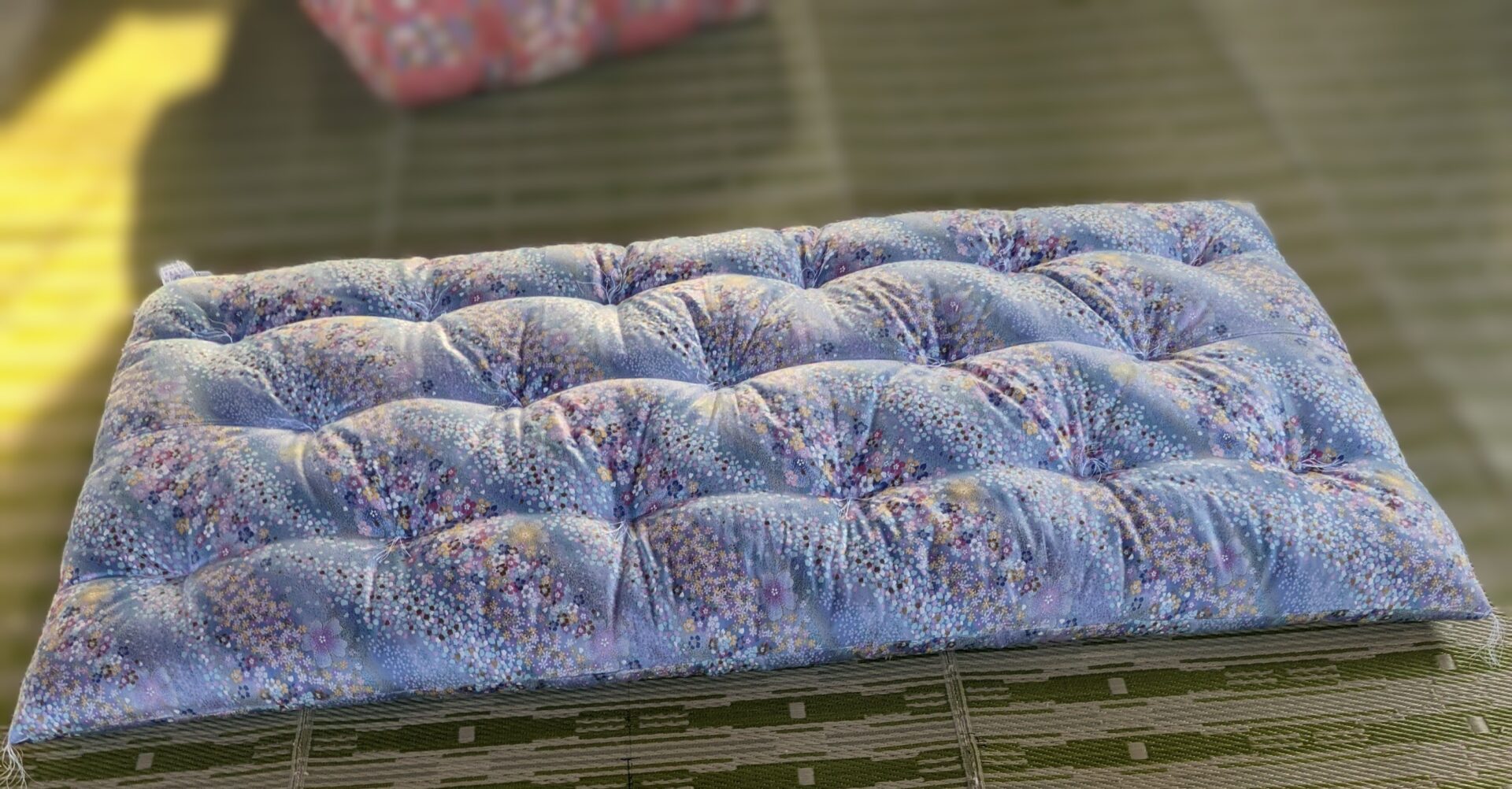 「軽めの敷ふとん」、「掛ふとんを敷ふとんに」、そして「足らない分は新しい綿を足す敷ふとん」などを作らせていただきました。(お洗濯側やご持参生地のおふとんがございますので、写真な2枚のみです)