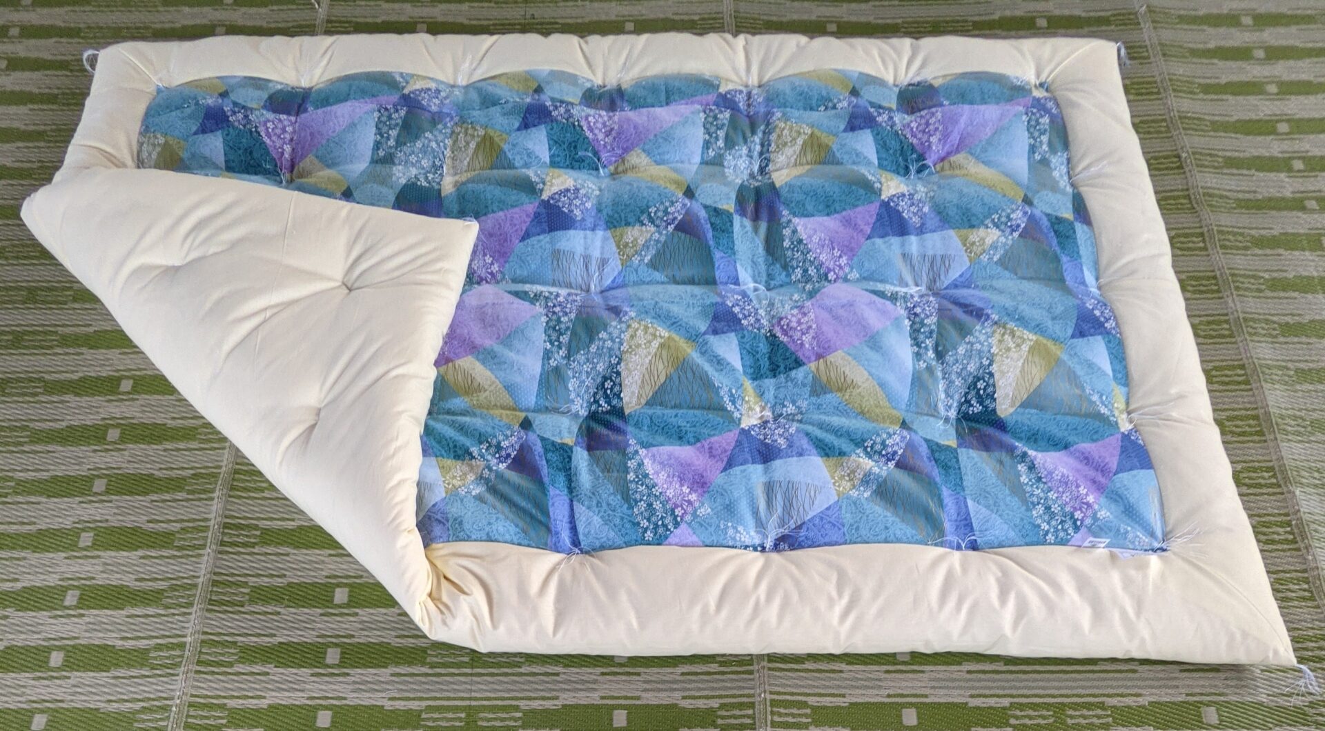 打ち直す時にメキシコ綿を打ち込んで、このサイズの通常よりも2割増しくらいにされました。厚くなりましたが、重すぎることもありません😊
