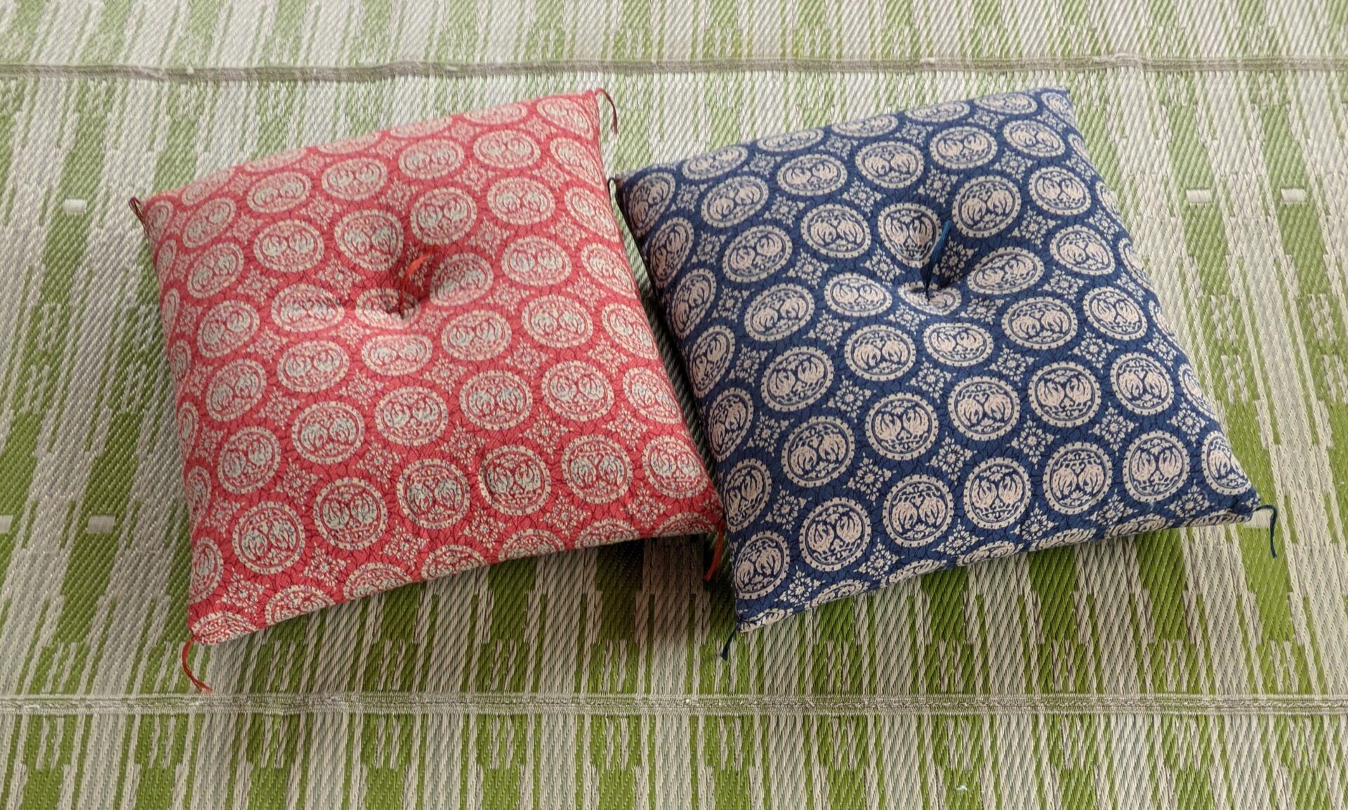 お座布団については、小中学生の皆さんに「座るときは何を敷く?」と尋ねる機会がありますが、「何も敷かない〜」との答えがかなりあることに驚きます。