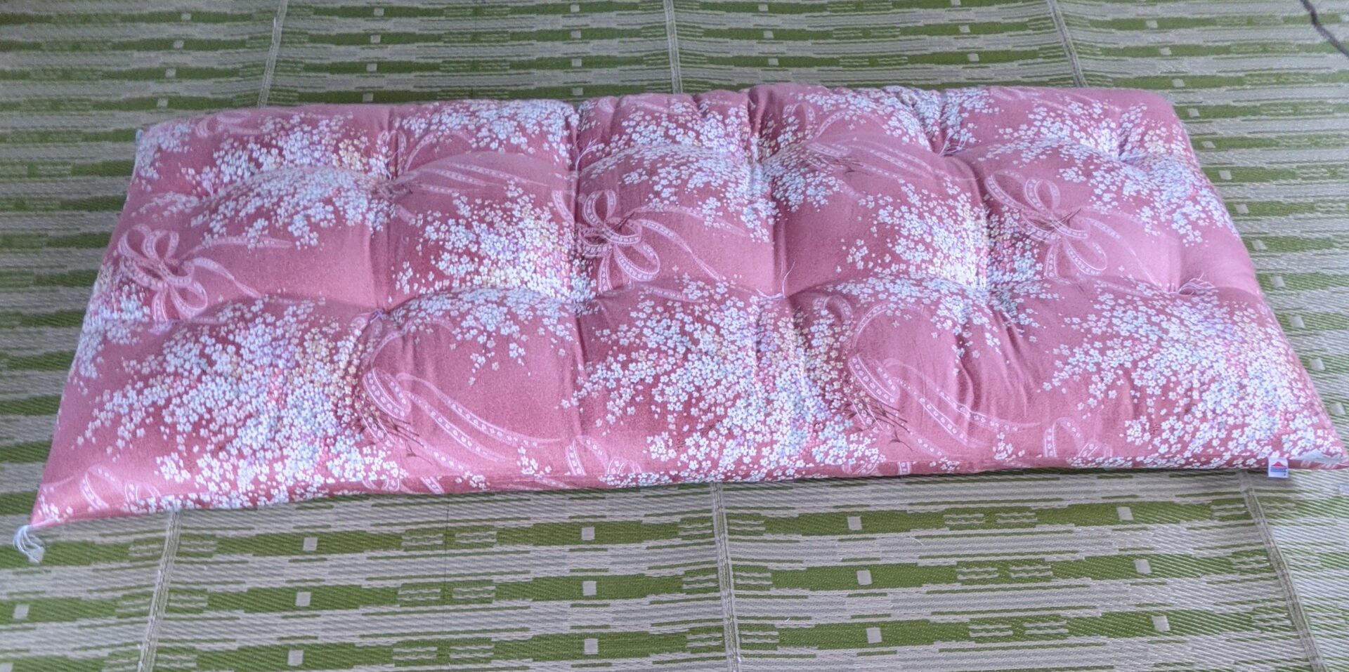 「あの」敷ふとんをお作りいたしました。なめらかサテンの「花束」ピンクです。