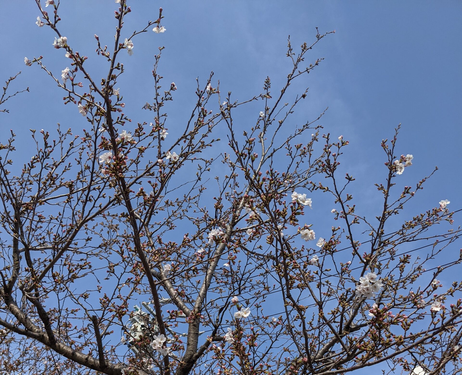 毎年楽しみにしている仕立て場近くの2本の🌸、まだもう少しですね。