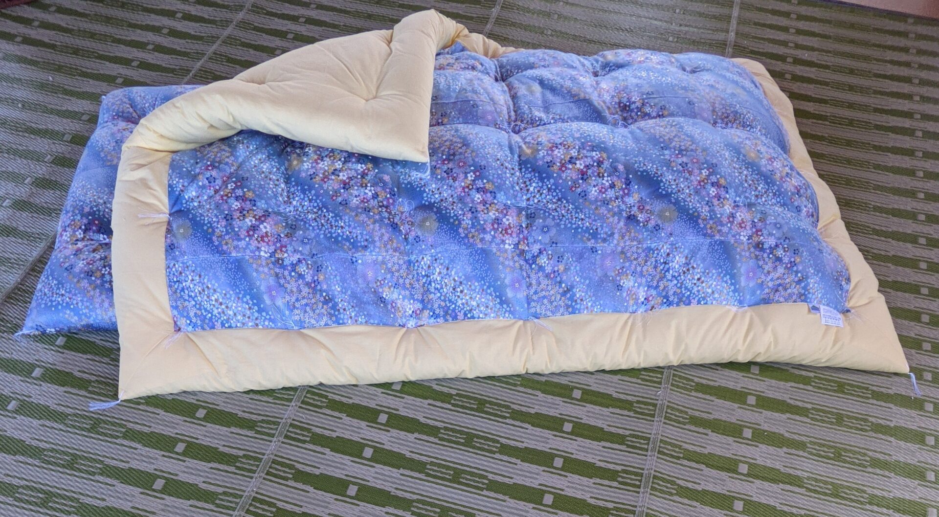 さて、「小桜」ブルーの150✕210センチサイズの掛ふとんが出来上がりました。