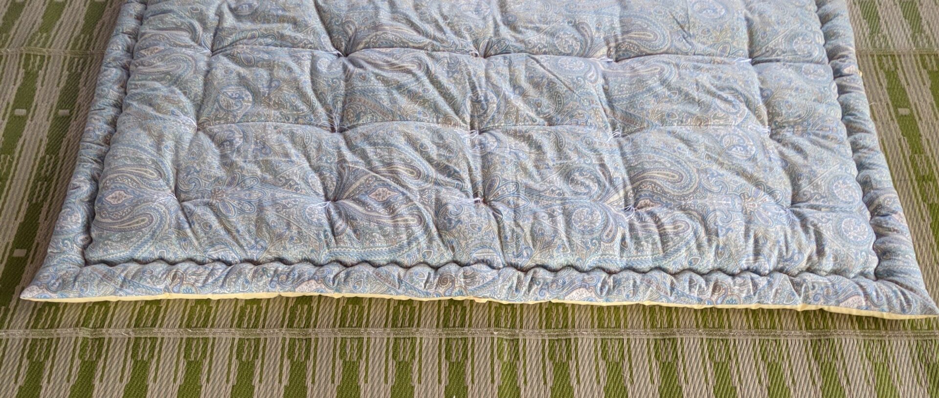 薄い肌掛ふとんの仕立て方によくありますキルティングを、軽めの秋冬用掛ふとんの縁に入れて、内側には和綴じを入れております。