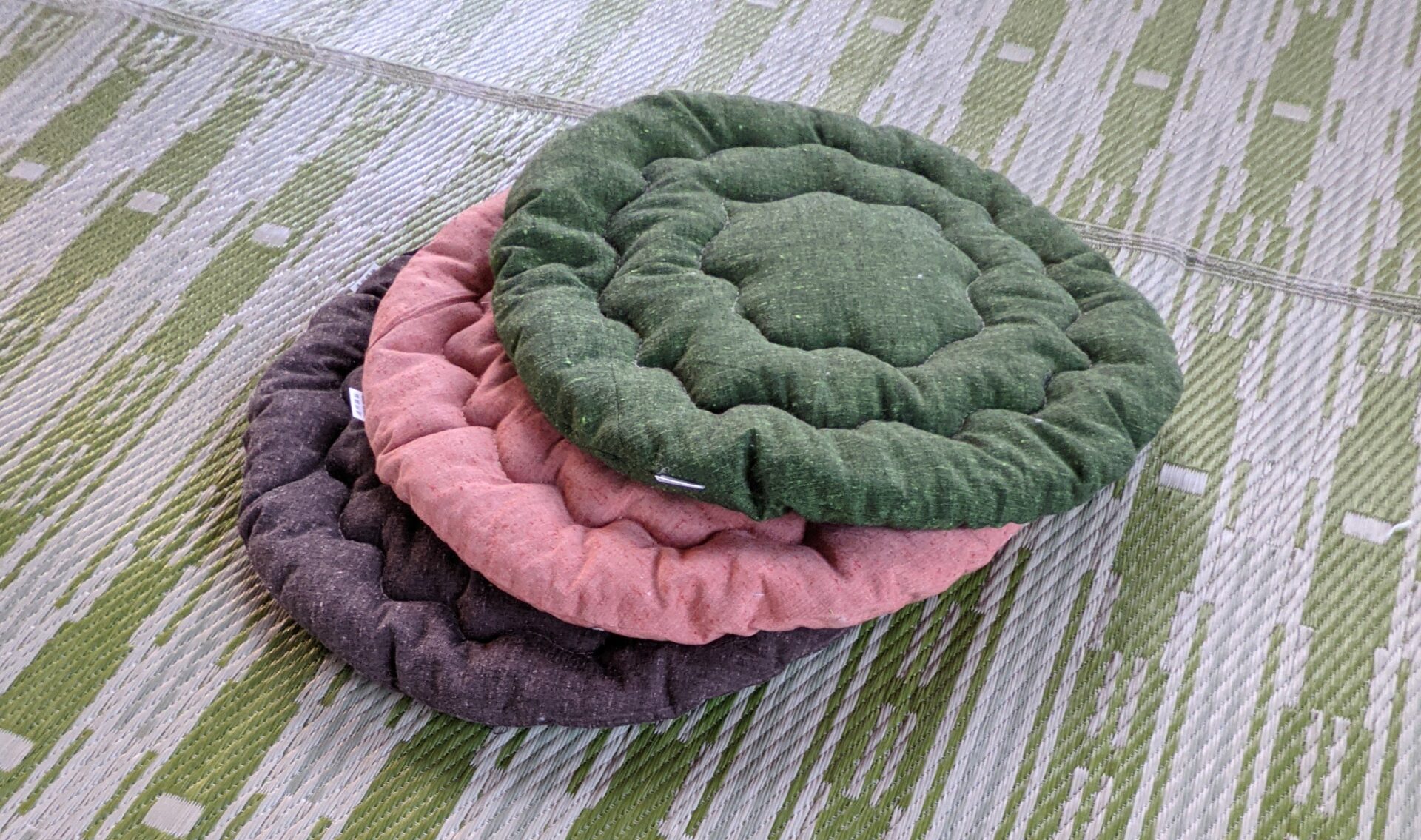 では早速、「えん」を。 以前スタッフとのやり取りの中で生まれた、遠州綿紬の薄い丸クッションが「えん」です。 「普通のお座布団ではお客さんが遠慮する。これなら「はいっ!」と差し出しや…