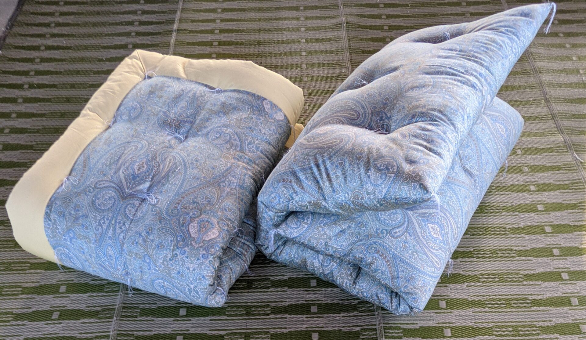 今日も過ごしやすい気温でした。 この辺り、あす明け方は今日よりも4°C位低いそうですので暖かくしてお休みくださいませ😊 本日のご注文 敷ふとんと掛ふと…